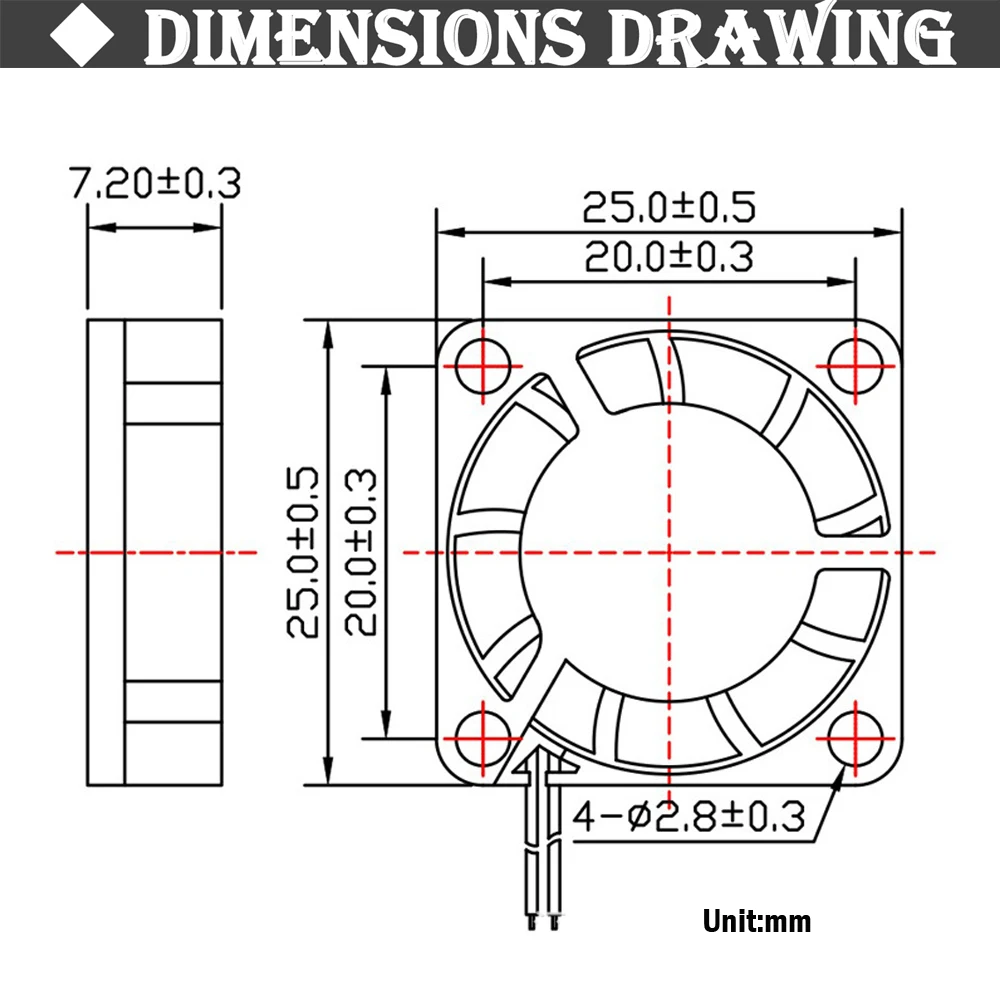2,5 cm 25mm 25x25x7mm DC 5V 2Pin Mini Brushless Cooling Fan Cooler