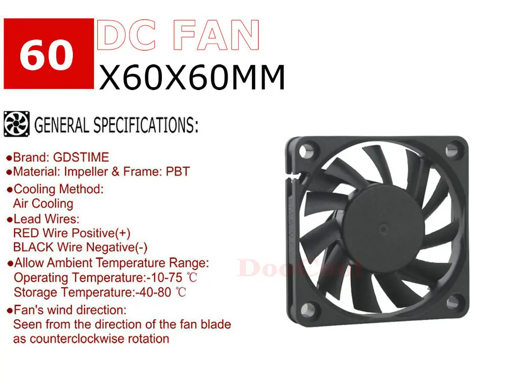 Comprar Gdstime-miniventilador de refrigeración para ordenador, 5 piezas, 5V, 12V, 24V, 2 pines, 3 pines, USB, 60mm, 60x60x10mm, 6010 DC