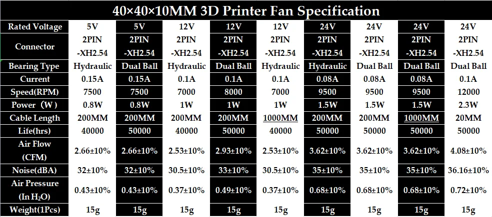 Ventilador de impresora 3D 5V 12V 24V 40X40X10MM