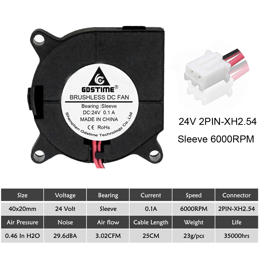 Comprar Gdstime-piezas de impresora 3D, ventilador Turbo de refrigeración, 40mm x 40mm x 20mm, 24V, 0.1A, 6000RPM, 4020, 40mm, CC, 10 Uds.