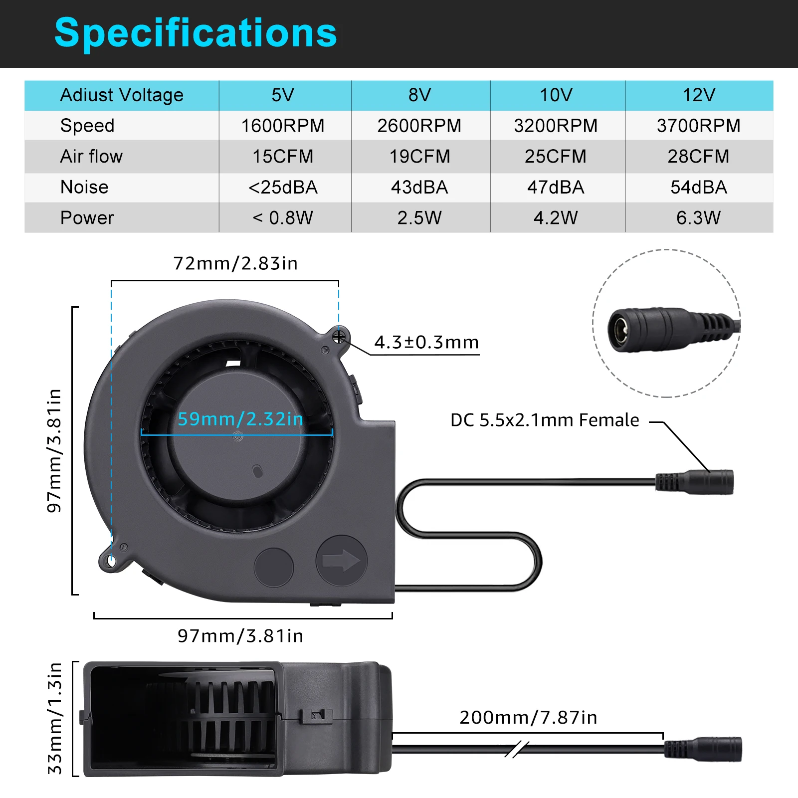 Comprar Gdstime-soplador de aire grande para barbacoa, ventilador centrífugo para exterior, estufa de leña, escape con adaptador, 9733 CC, 5,5x2,1mm, 12V, 97mm, 97x33mm