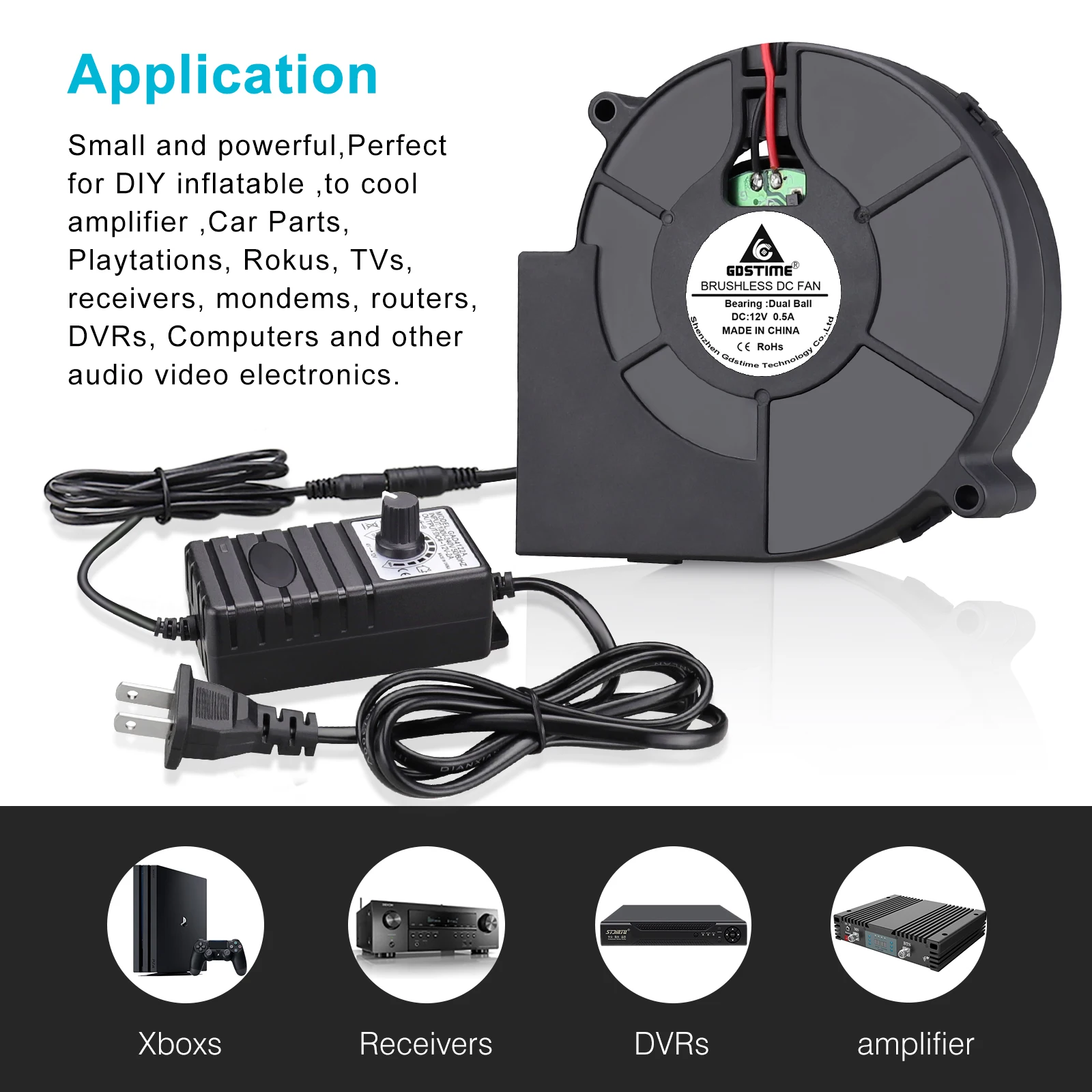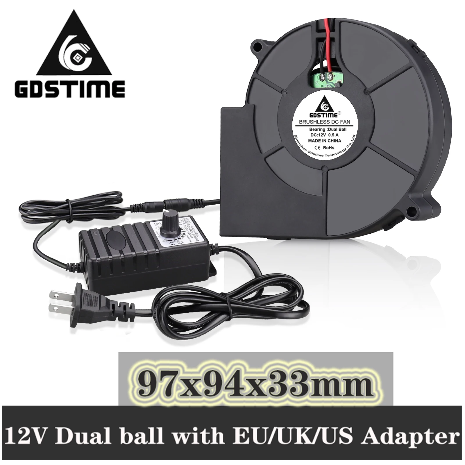 Comprar Gdstime-soplador de aire grande para barbacoa, ventilador centrífugo para exterior, estufa de leña, escape con adaptador, 9733 CC, 5,5x2,1mm, 12V, 97mm, 97x33mm