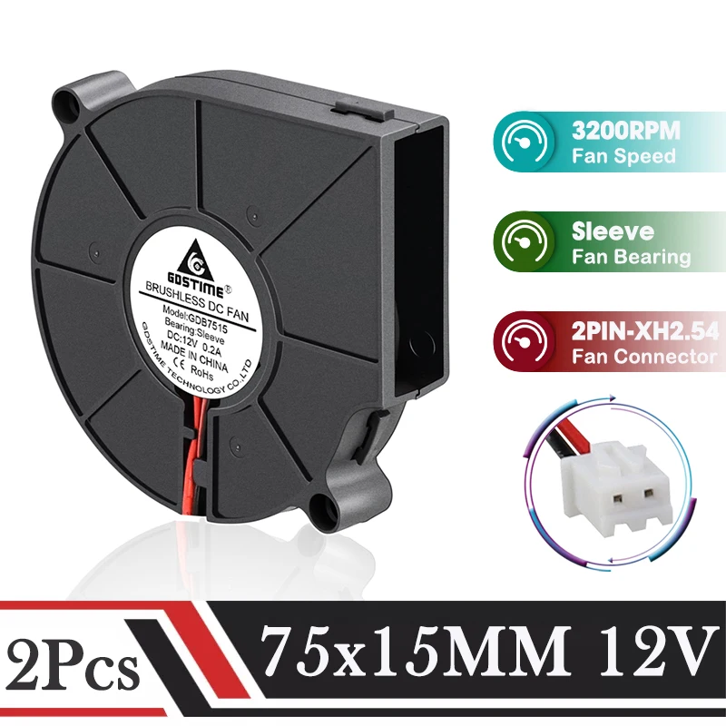 Comprar Gdstime Turbo-ventilador centrífugo sin escobillas, enfriador Radial de 75MM para carcasa de ordenador, refrigeración de CPU, 2 piezas, CC de 12V, 75x75x15MM