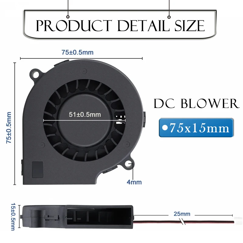 El ventilador DC 12V 75MM3200 RPMAlta velocidad y7.1CFMGran flujo de aire.