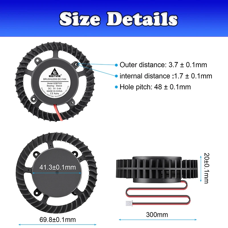 Comprar Gdstime Turbo-ventilador Radial centrífugo, ventilador de flujo de aire grande de 7cm, 70x70x20mm, CC de 5V, 3000RPM, para purificador de armario, refrigeración de tarjeta VGA