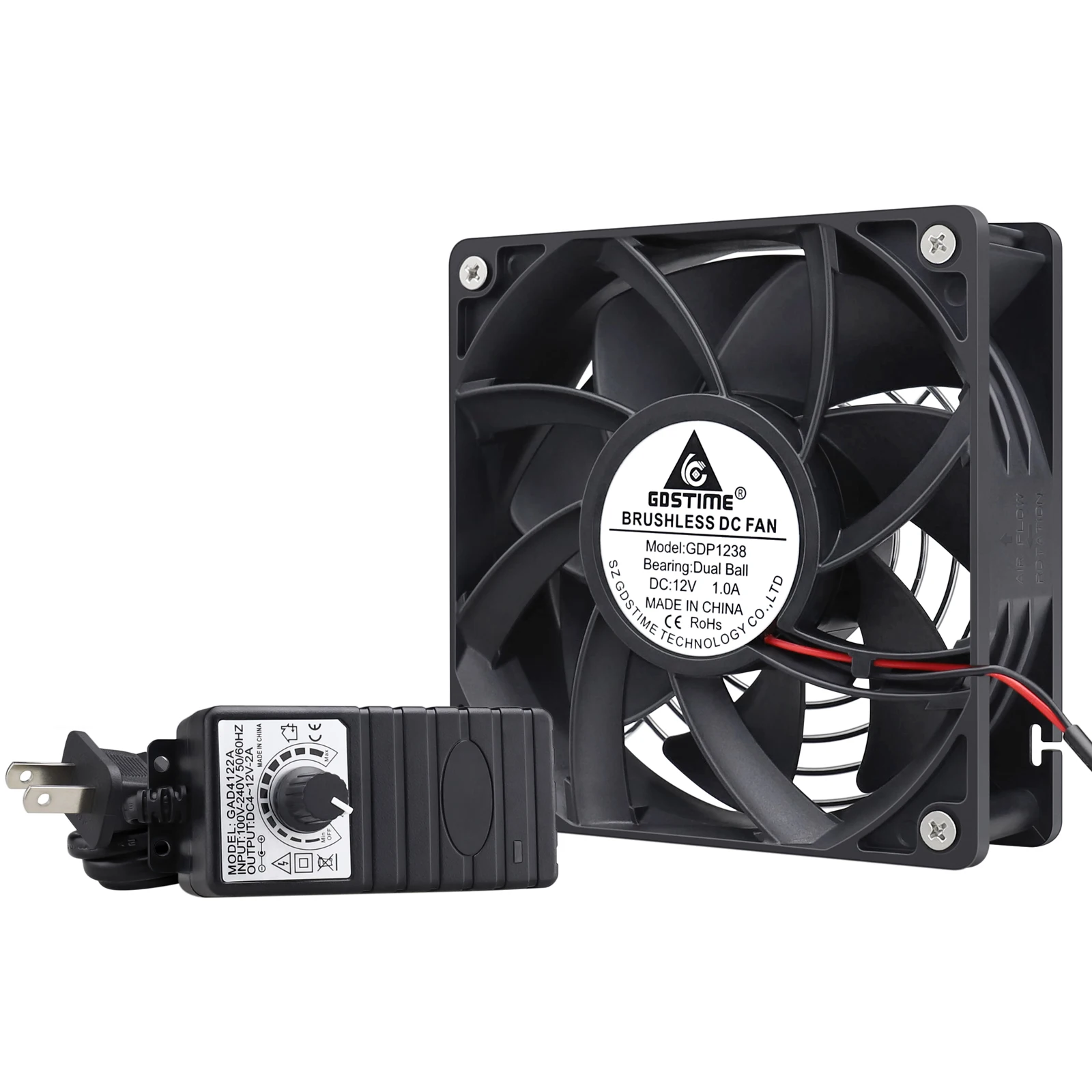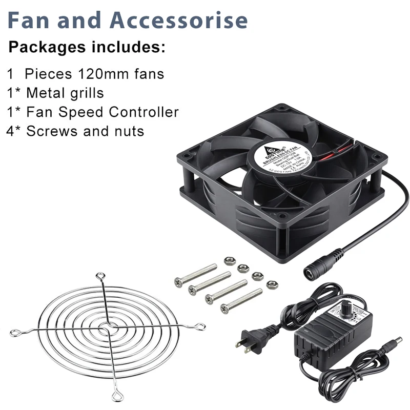 1 Juego (ventilador de rodamiento de bolas 12038 12v + adaptador de CA/controlador) anDe b.Pendiente de 120mm
