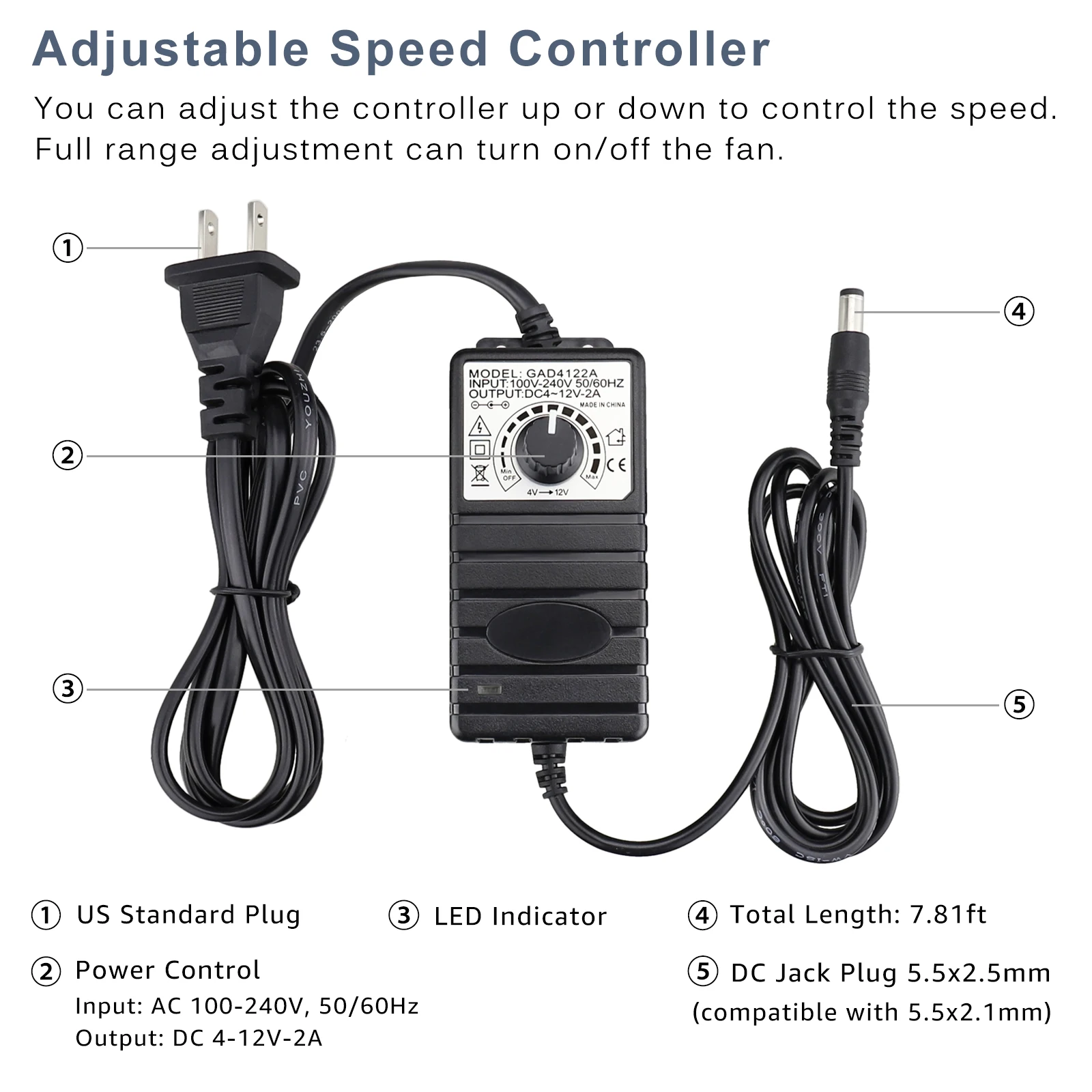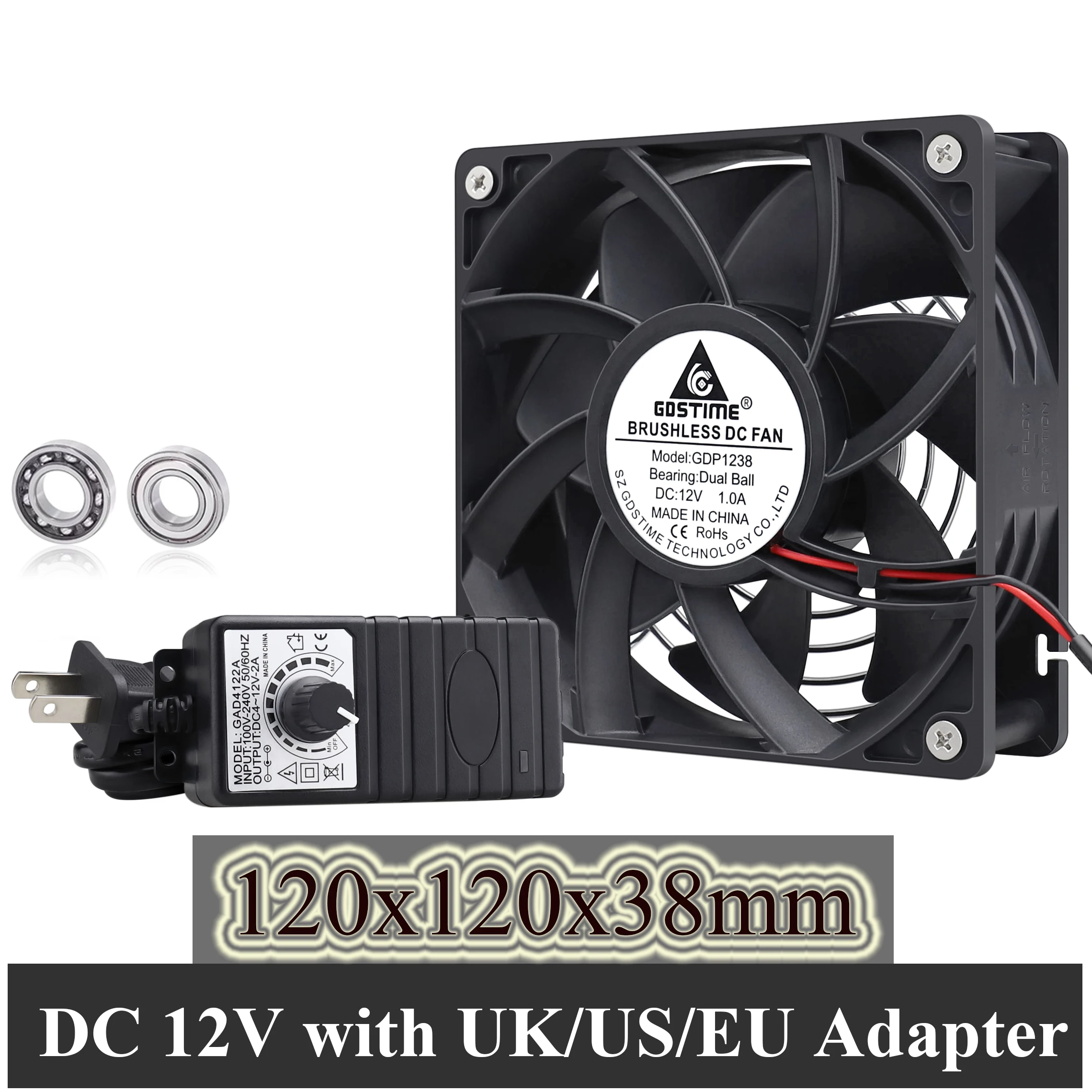 1 Juego (ventilador de rodamiento de bolas 12038 12v + adaptador de CA/controlador) anDe b.Pendiente de 120mm