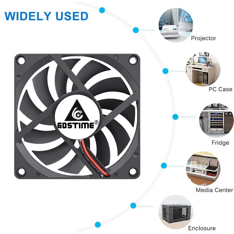 Comprar Gdstime-ventilador de 2 piezas, 5V, 12V, 24V, 80mm, 80mm x 80mm x 10mm, carcasa de ordenador, PC, CPU, funda de ventilador de refrigeración, rodamiento de bolas, USB, 2 pines, 3 pines