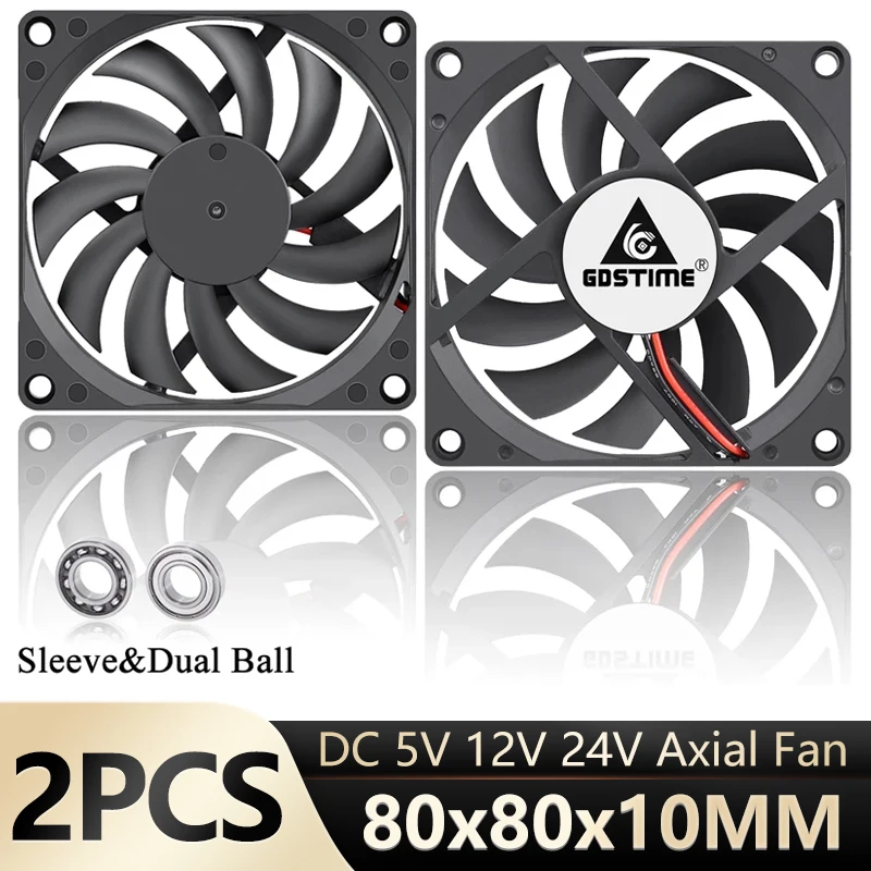 Comprar Gdstime-ventilador de 2 piezas, 5V, 12V, 24V, 80mm, 80mm x 80mm x 10mm, carcasa de ordenador, PC, CPU, funda de ventilador de refrigeración, rodamiento de bolas, USB, 2 pines, 3 pines