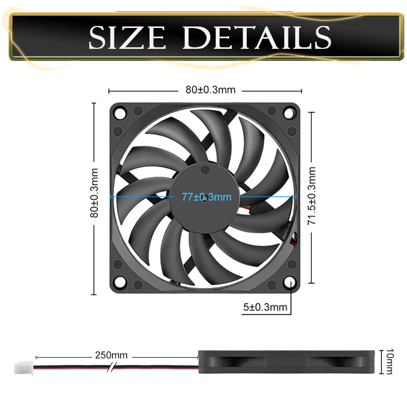 DC 5V/12V/24V Ventilador 80mm 80x80x10mm