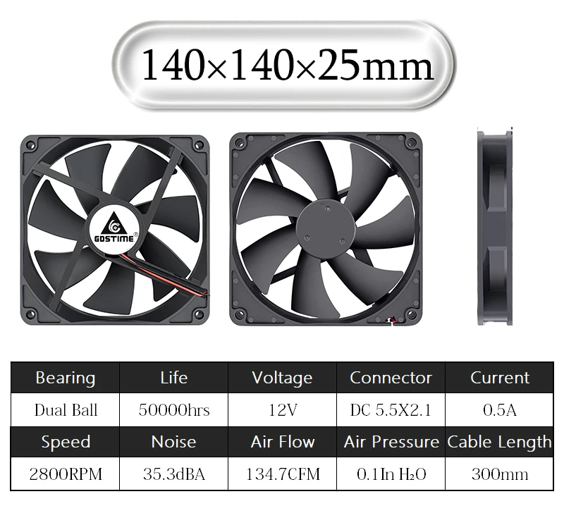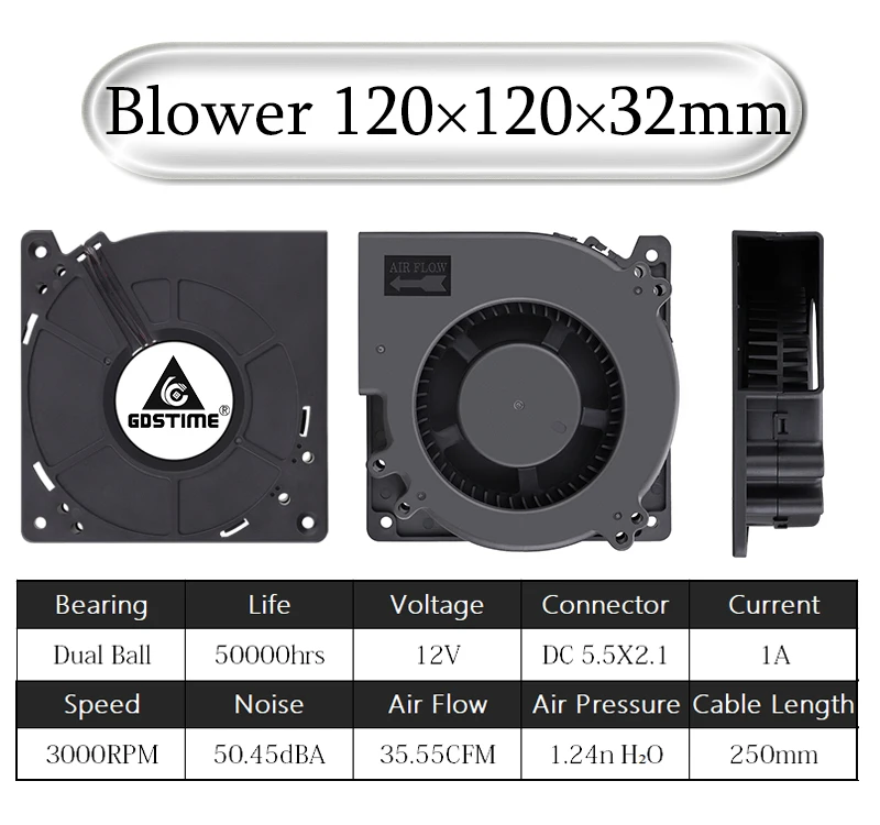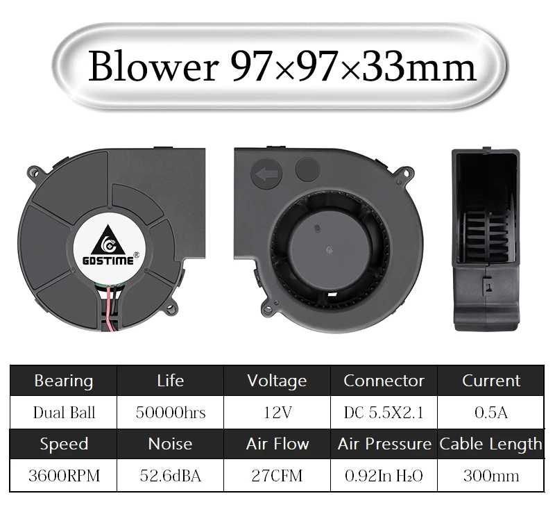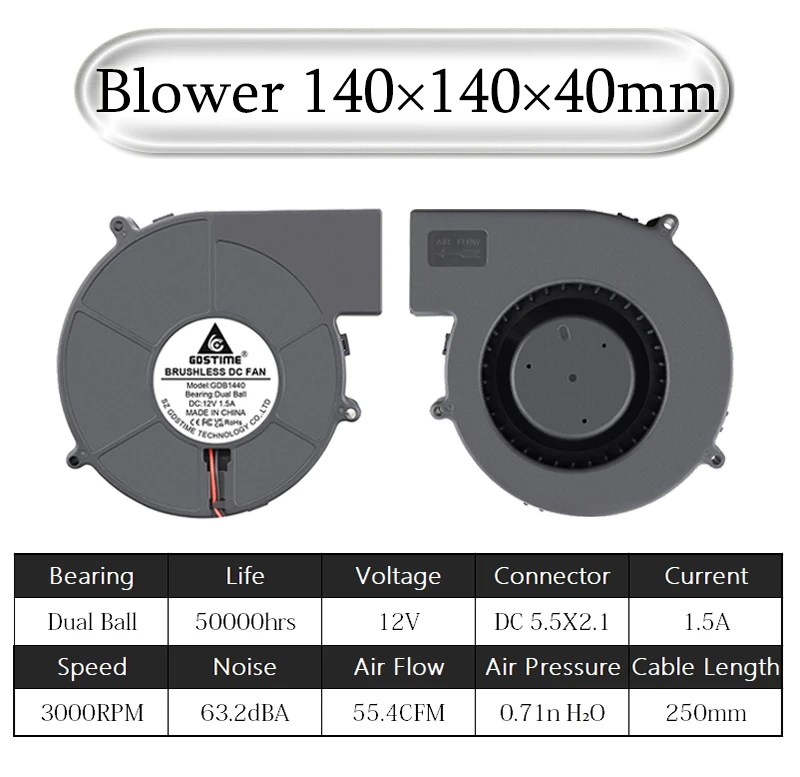 Soplador: 97x97x3 3mm/120x120x3 2mm/140x140x40mm