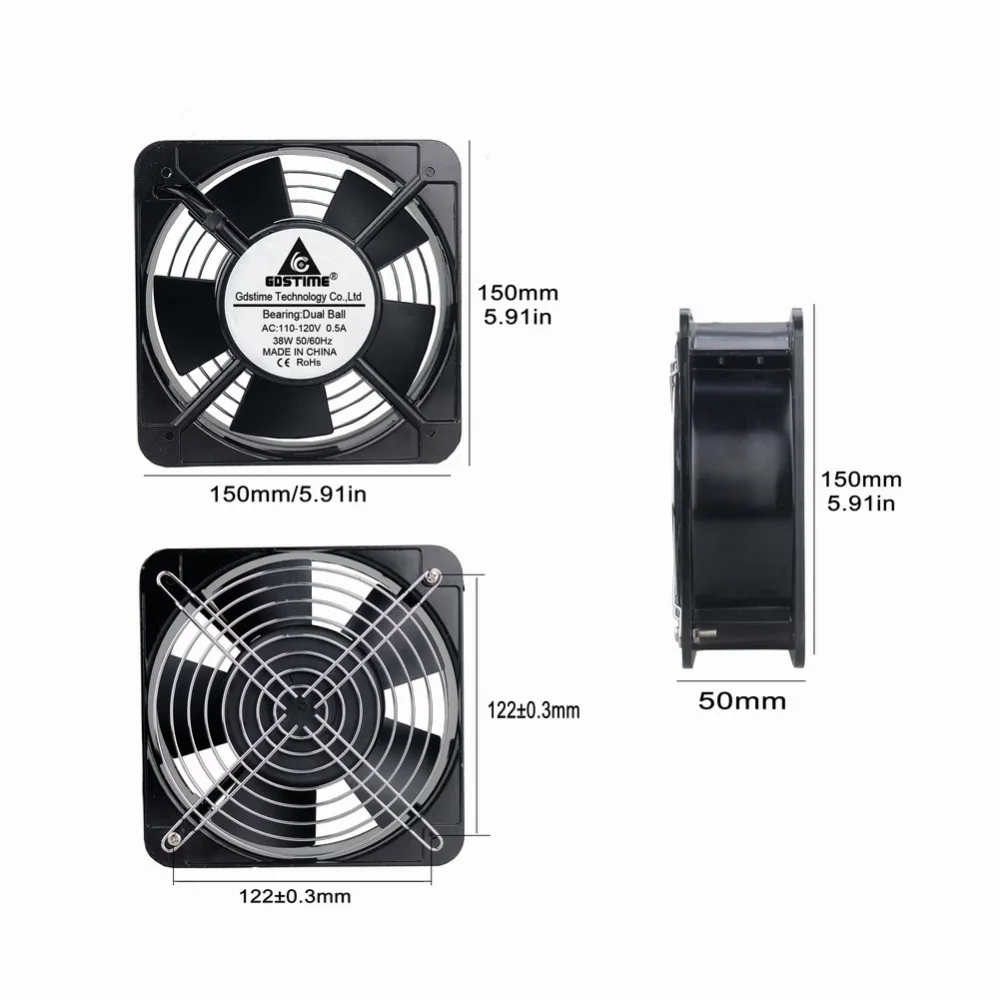 Comprar Gdstime-ventilador Axial de CA, 110V, 115V, 120V, 150MM, 15CM, 15050, industria, ventilación, proyectos de escape, ventilador de refrigeración con malla de hierro y enchufe