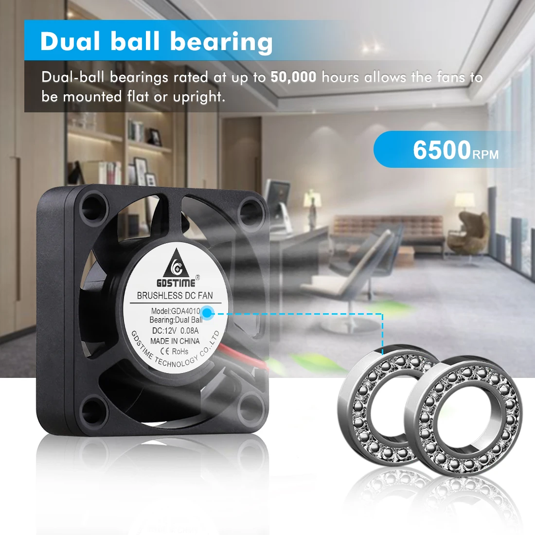 Comprar GDSTIME-ventilador Axial de refrigeración para impresora 3D, 40mm, 12V, 1M de largo, CC, sin escobillas, doble bola, 40x40x10mm, 10 unidades