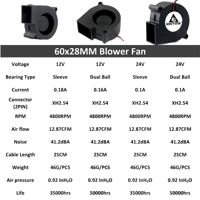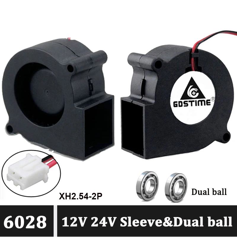 Comprar Gdstime-ventilador centrífugo de CC, 60mm, 60x28mm, 12V, 24V, enfriador sin escobillas, radiador de disipador de calor de doble manguito de bola, 6028, 6cm, 2 uds.
