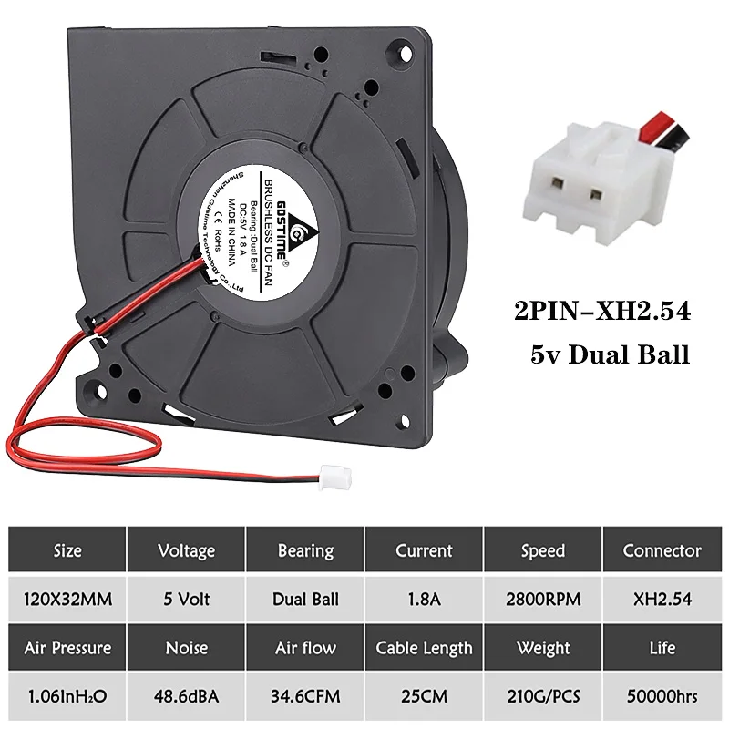 Comprar Gdstime-ventilador centrífugo de doble bola para ordenador, dispositivo de ventilación de 120mm, 5V, 120x120x32mm, gran volumen de aire Radial, 2 piezas, nuevo