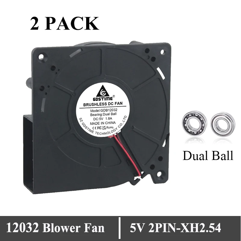 Comprar Gdstime-ventilador centrífugo de doble bola para ordenador, dispositivo de ventilación de 120mm, 5V, 120x120x32mm, gran volumen de aire Radial, 2 piezas, nuevo