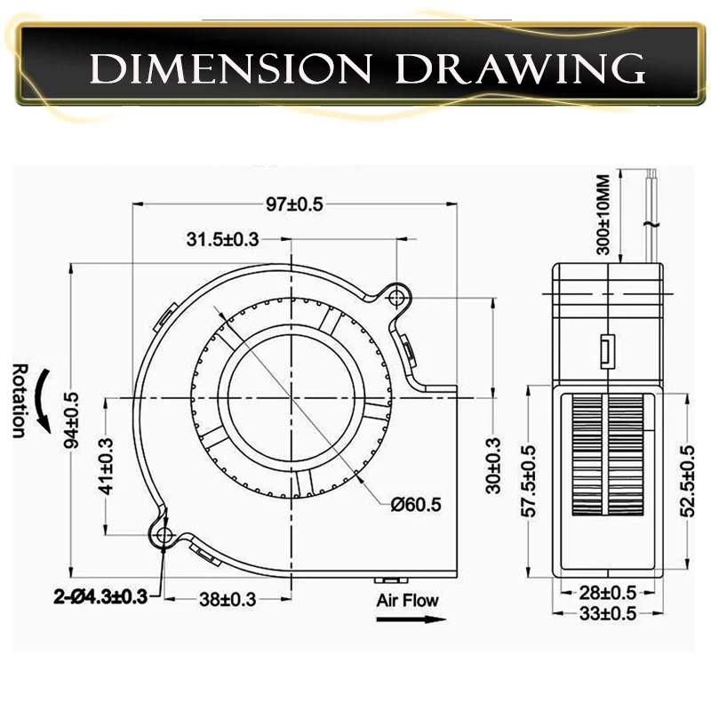 Comprar Gdstime-ventilador centrífugo de flujo para barbacoa, manga de 9733 RPM, rodamiento de bolas, 9cm, 97x33mm, DC 3600, 12V, 24V, 2 uds.