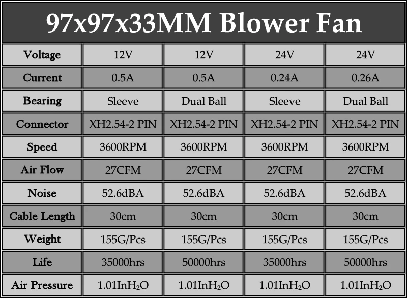 97x33mm 12V/24V manga/rodamiento de bolas DC ventilador enfriador ventilador