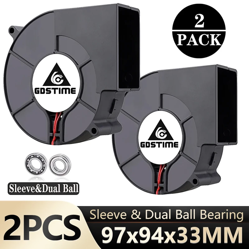 Comprar Gdstime-ventilador centrífugo de flujo para barbacoa, manga de 9733 RPM, rodamiento de bolas, 9cm, 97x33mm, DC 3600, 12V, 24V, 2 uds.