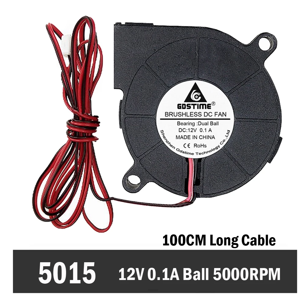 Comprar Gdstime-ventilador de doble bola para impresora 3D, ventilador de refrigeración Industrial de 12V 500, 50mm x 50mm x 15mm, 5015 Uds.