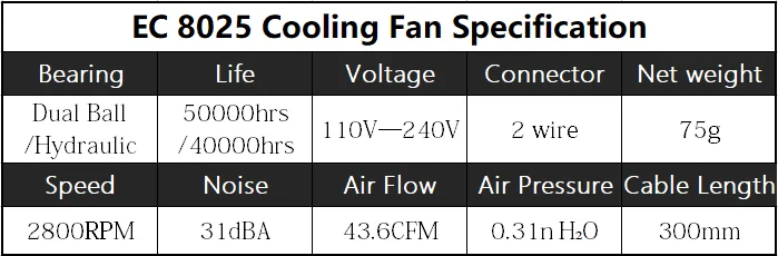 2 piezas ventilador EC de 80x80x25mm + 2 piezas rejillas de ventilador