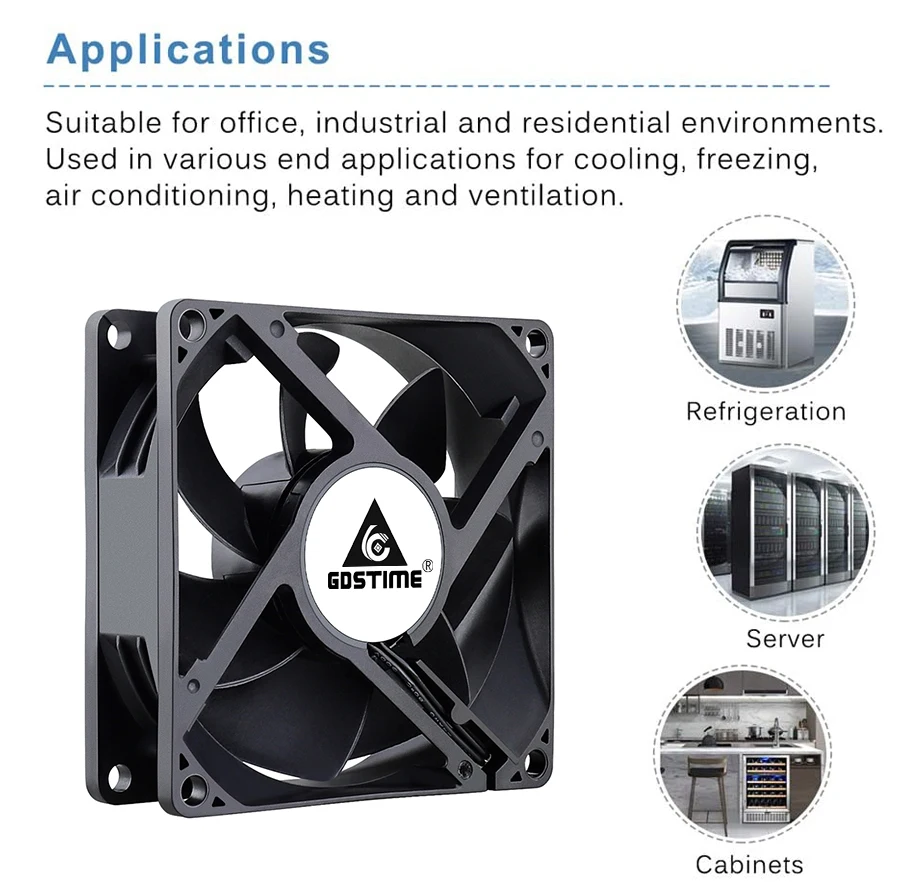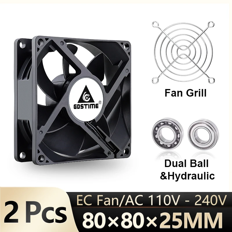 Comprar Gdstime-ventilador de doble Bola con rejilla de ventilador, Enfriador de 80mm x 25mm para ordenador, PC, CPU, 2 piezas, 80mm, CA 110V 120V 220V 240V