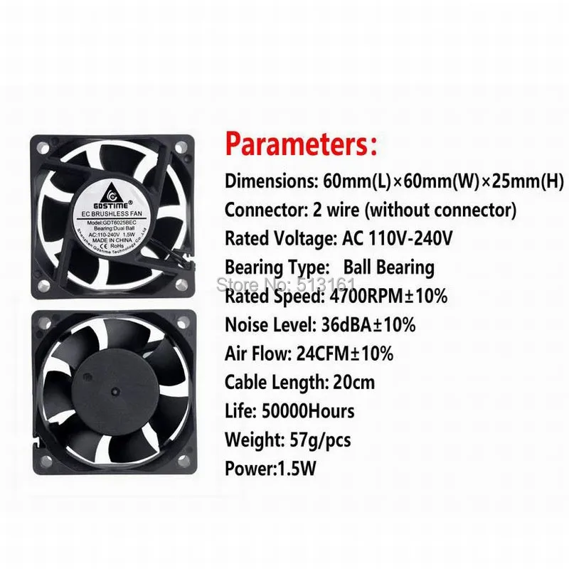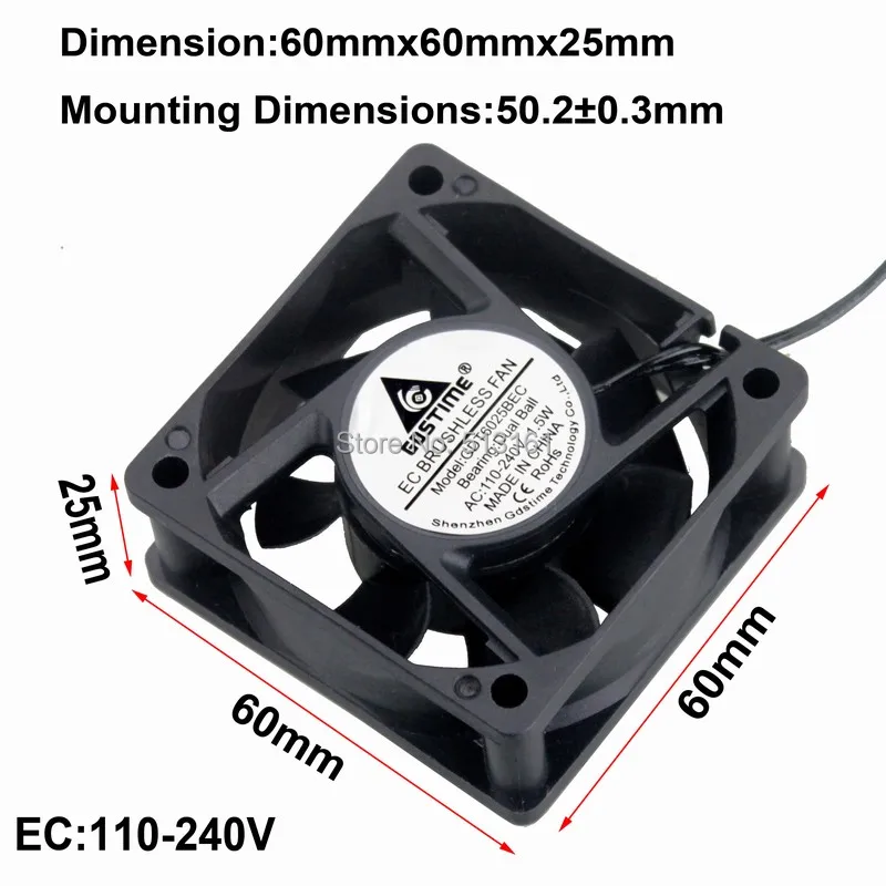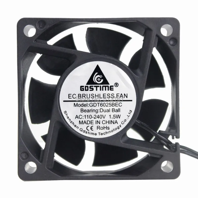 Gdstime 60mm 6cm 60x60x25mm Dual Ball AC 110V 120V 220V 240V EC brushless Cooling Cooler Fan Industry Cooling Fan