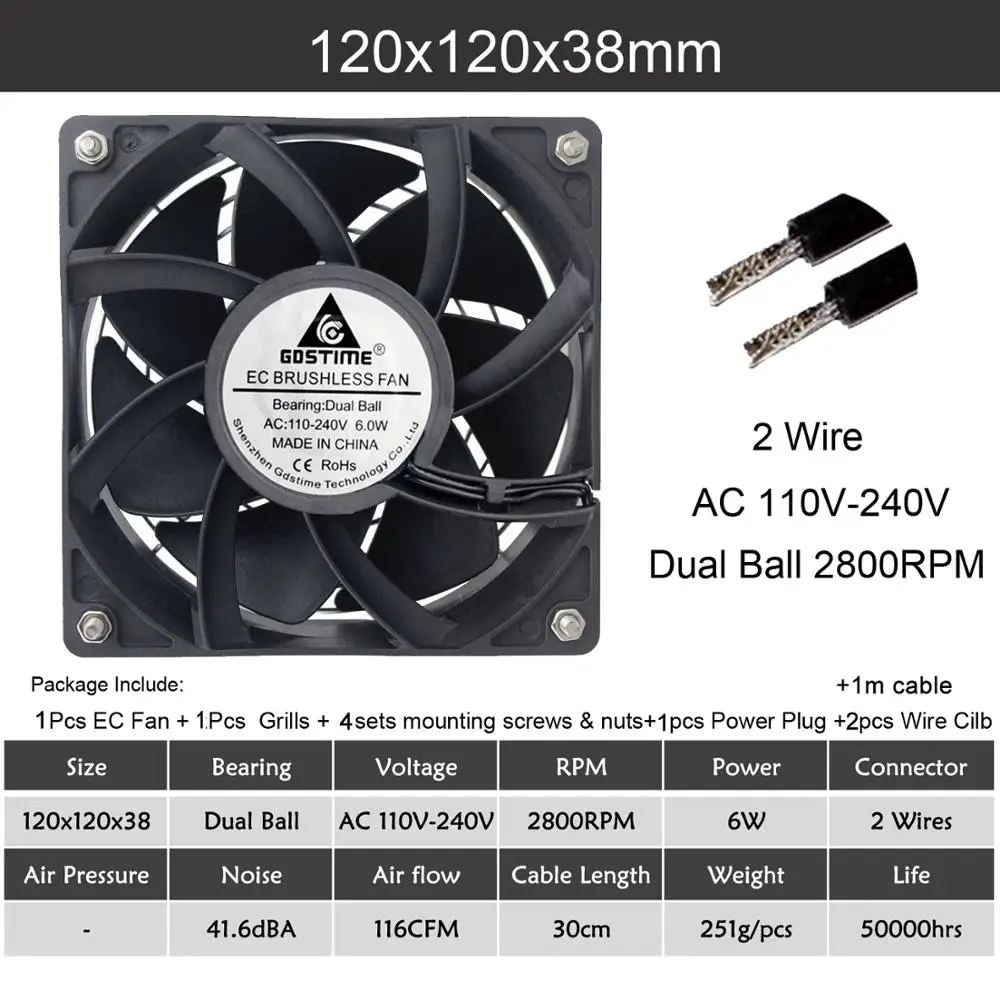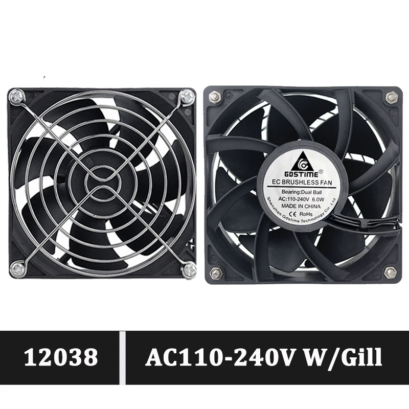 Comprar Gdstime-ventilador de escape de alta velocidad 12038, 120mm x 38mm, EC AC 110V, 120V, 220V, 240V, Enfriador de gabinete, ventilador de refrigeración con rejilla protectora