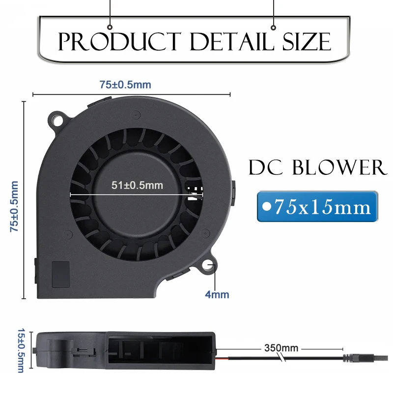 El ventilador DC 5V 75MM3000 RPMAlta velocidad y6.83CFMGran flujo de aire.