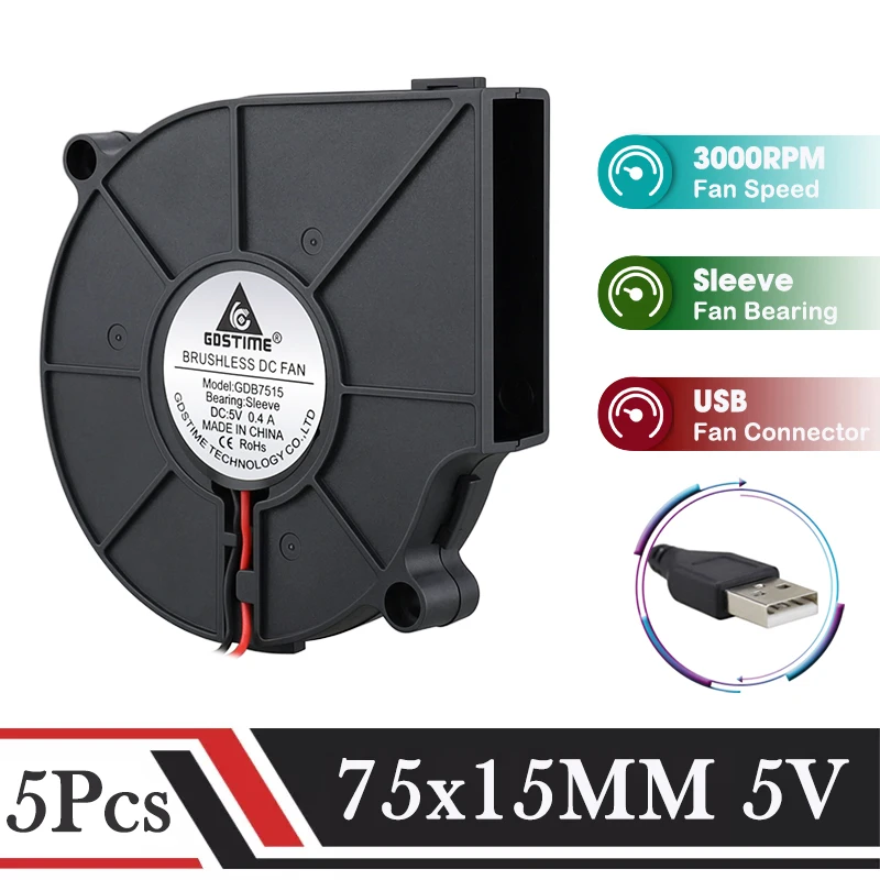 Comprar Gdstime-ventilador Radial centrífugo Turbo sin escobillas para ordenador, humidificador de refrigeración, 5 piezas, 5V, USB, 75MM x 15MM, CC