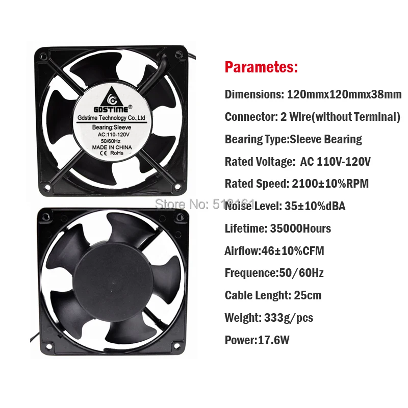 Comprar Gdstime-ventilador de refrigeración de 12cm, 120mm, 120mm x 120mm x 38mm, cojinete de manga, CA 110V, 120V, 20 piezas