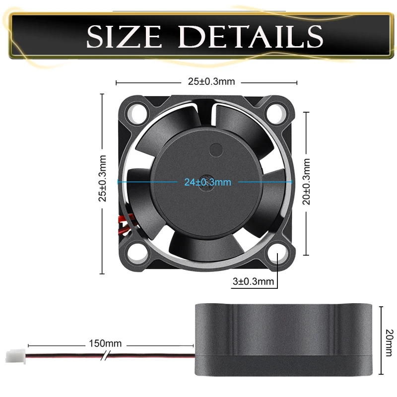 Comprar Gdstime-ventilador de refrigeración 2510 DC, rodamiento de bolas de 24V, Mini refrigerador de 25mm, radiador de 25x25x10mm, 2 pines, 2 uds.