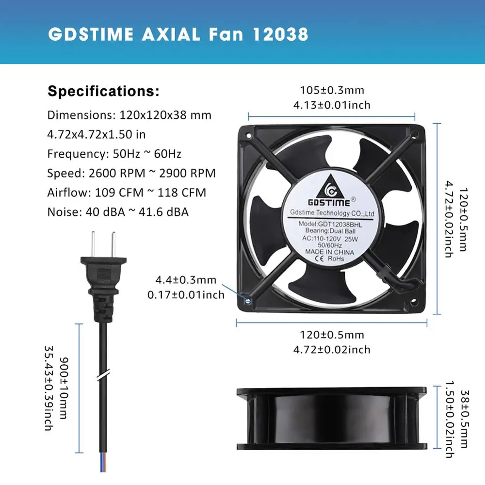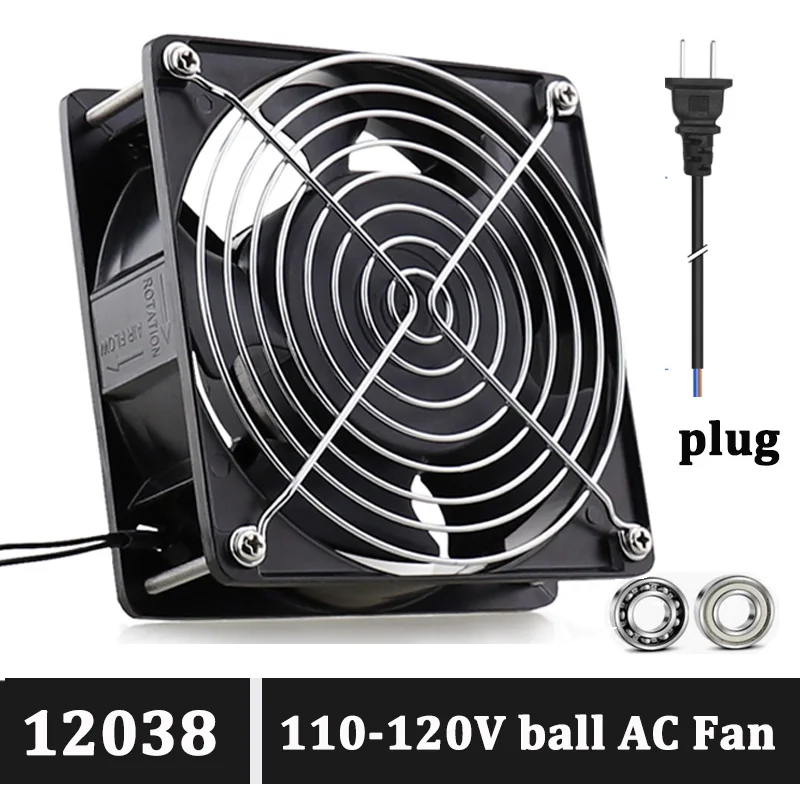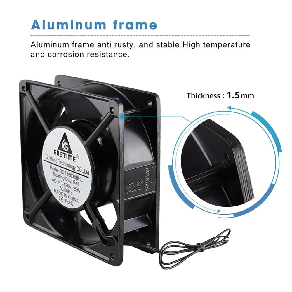 Comprar Gdstime-ventilador de refrigeración AC 120x120x38mm, 110V/120V, 120mm, marco de Metal, flujo Axial, Conector de 2 cables, bola 12038, ventilador de escape