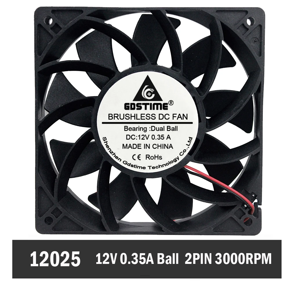 Gdstime-ventilador de refrigeración de alta presión para ordenador, dispositivo de flujo de aire grande de 12cm, 120mm, 120mm x 120mm x 25mm, DC 12V, 0.35A