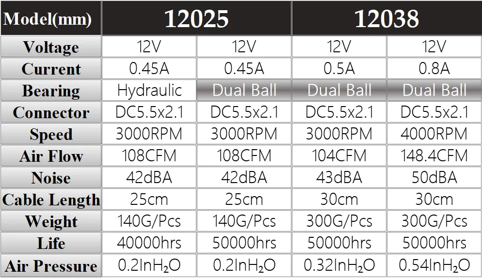 2. En rodamientos comparación con otros, los ventiladores de doble rodamiento de bolas producen un poco más de ruido, pero duran más.