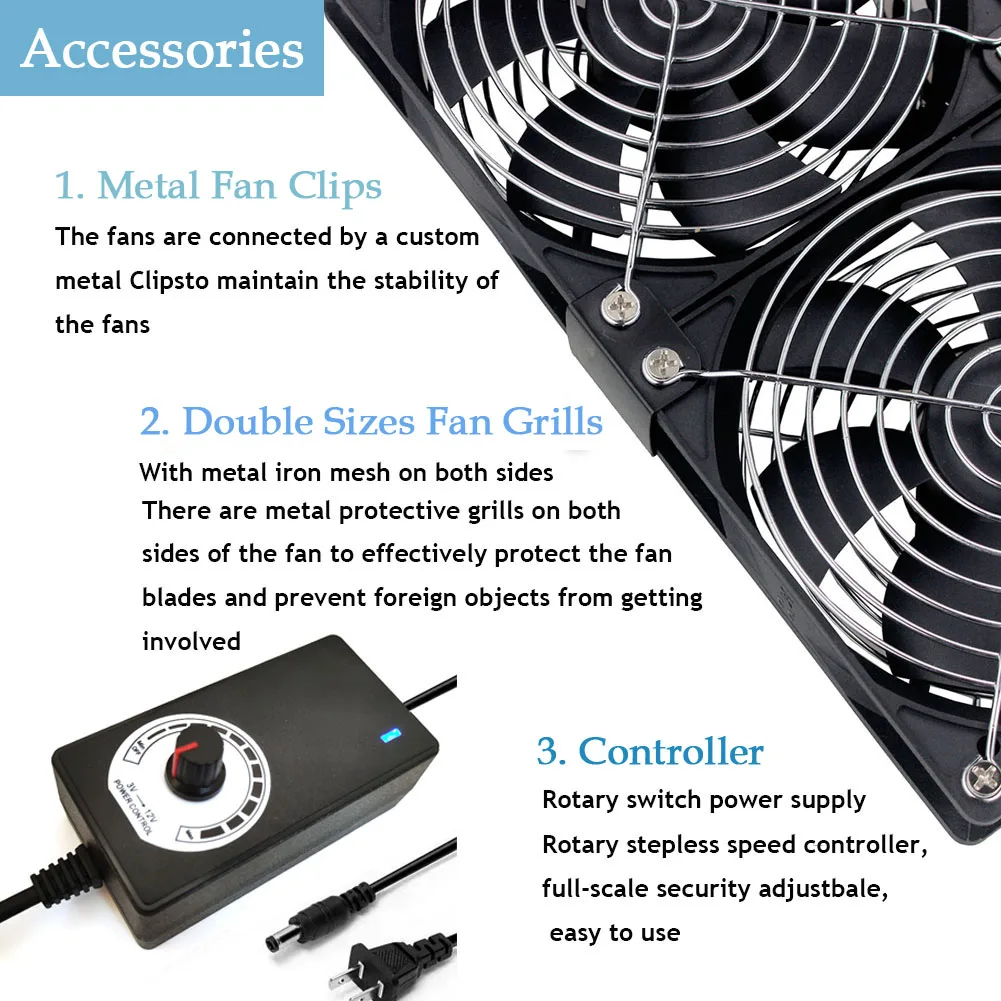 El controlador de velocidad variable le permite configurar la velocidad de su ventilador de CC a niveles óptimos de ruido y flujo de aire para diversas aplicaciones.
