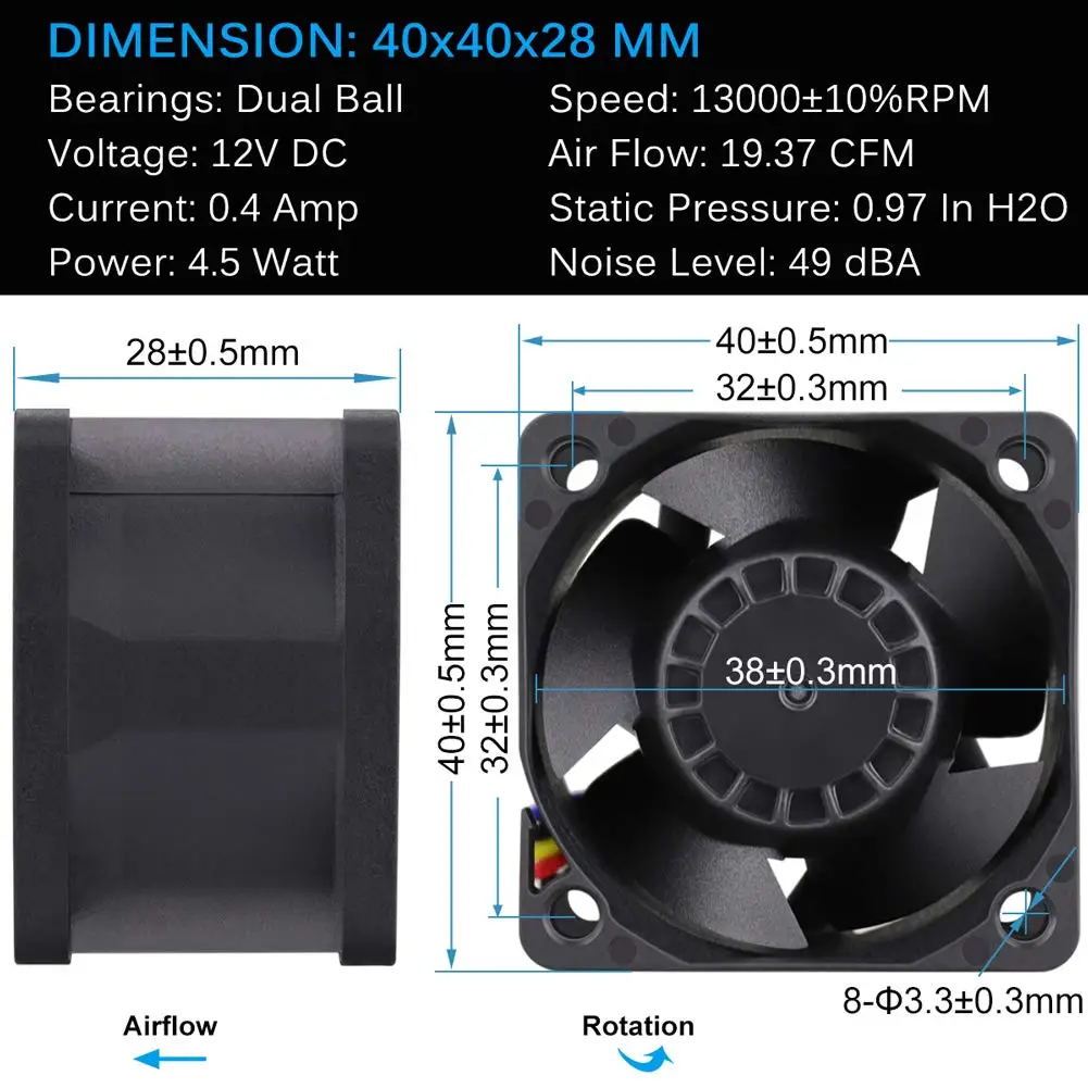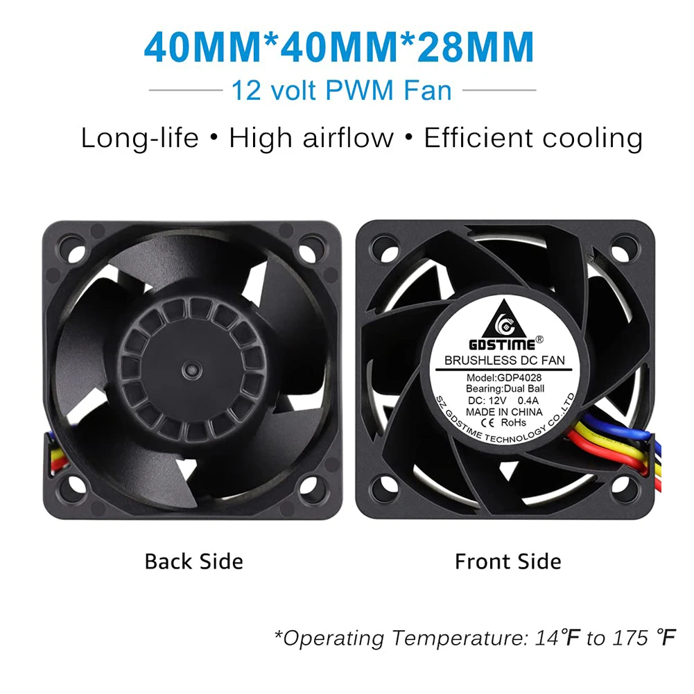 Comprar Gdstime-ventilador de refrigeración de alta velocidad de rotación, Enfriador de 4 pines PWM de 40x40x28mm, 4028, 40mm, 4cm, CC, 12V, 13000RPM, 10 piezas