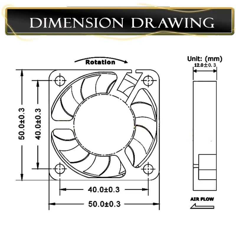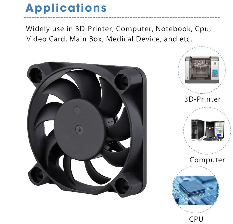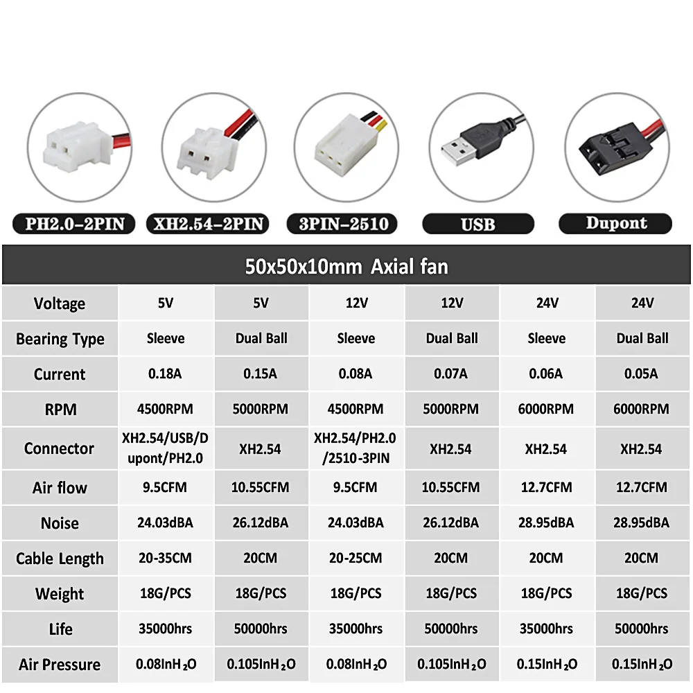 DC 5V 12V 24V 2Pin 5cm 50x50x10mm 5010 50mm Ventilador de refrigeración