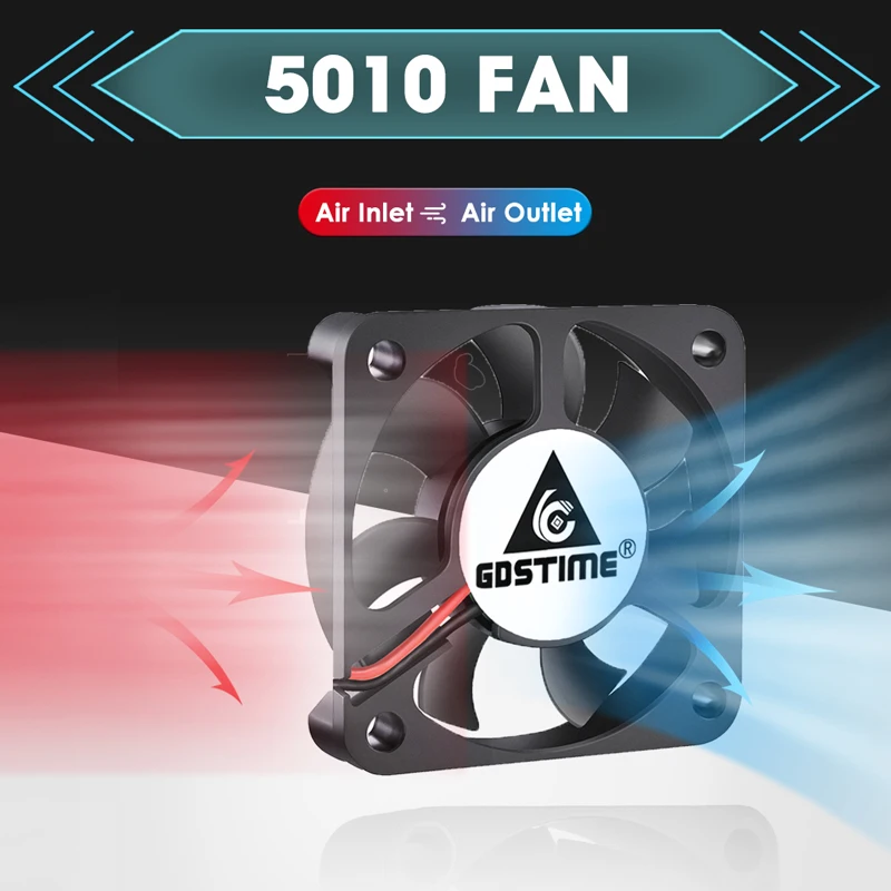 Comprar Gdstime-ventilador de refrigeración Axial, 5cm, 5010, 5v, 12v, 24V, 50mm, rodamiento de bolas, 50x50x10mm, disipador térmico para ordenador portátil, 2 uds.