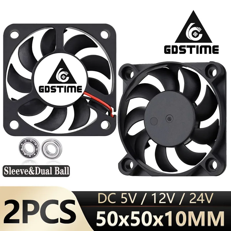 Comprar Gdstime-ventilador de refrigeración Axial, 5cm, 5010, 5v, 12v, 24V, 50mm, rodamiento de bolas, 50x50x10mm, disipador térmico para ordenador portátil, 2 uds.