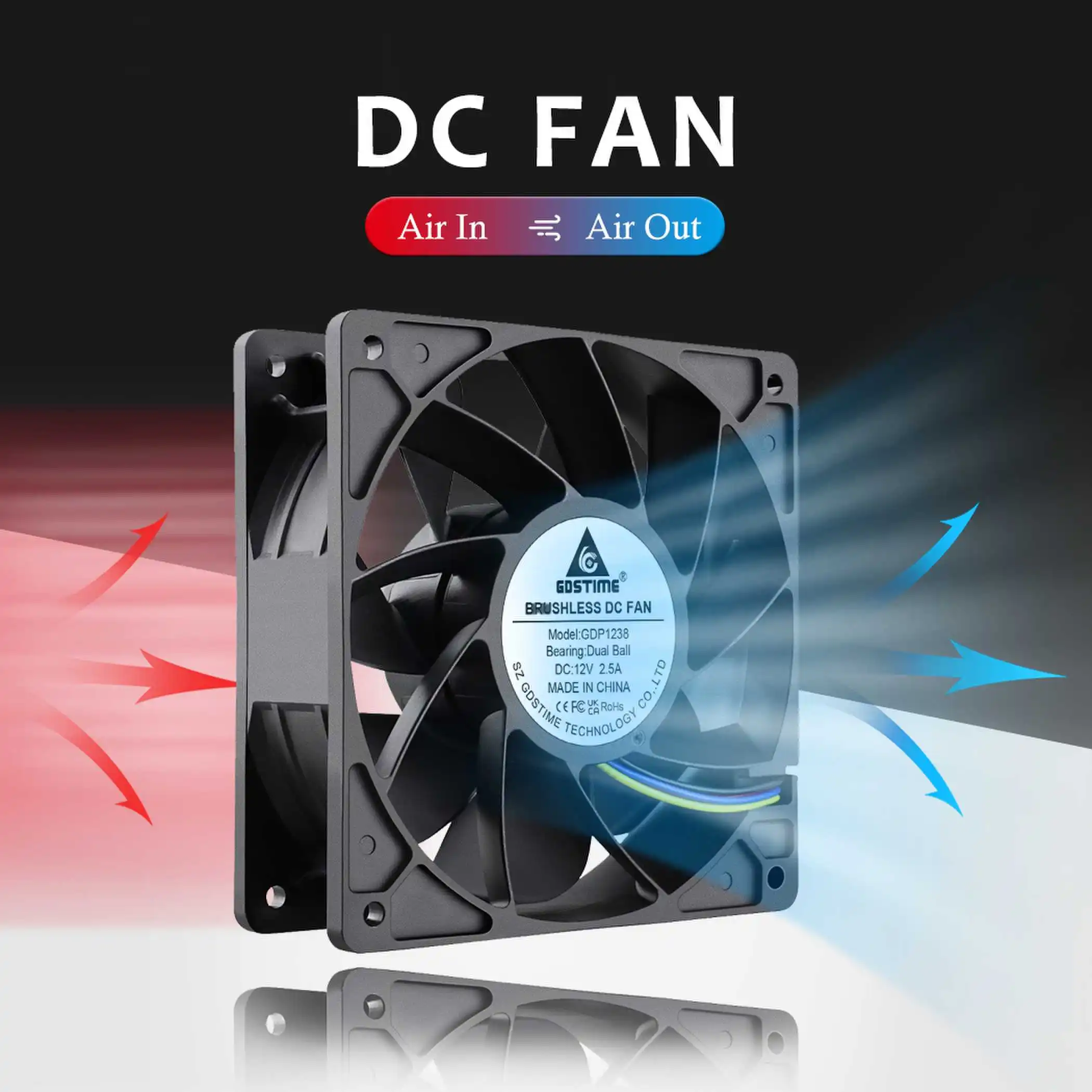 Comprar Gdstime-ventilador de refrigeración para caja de ordenador, radiador de servidor de rodamiento de bolas Dual, 5 piezas, 12cm, 12038x120x38mm, 12V, 4 pines