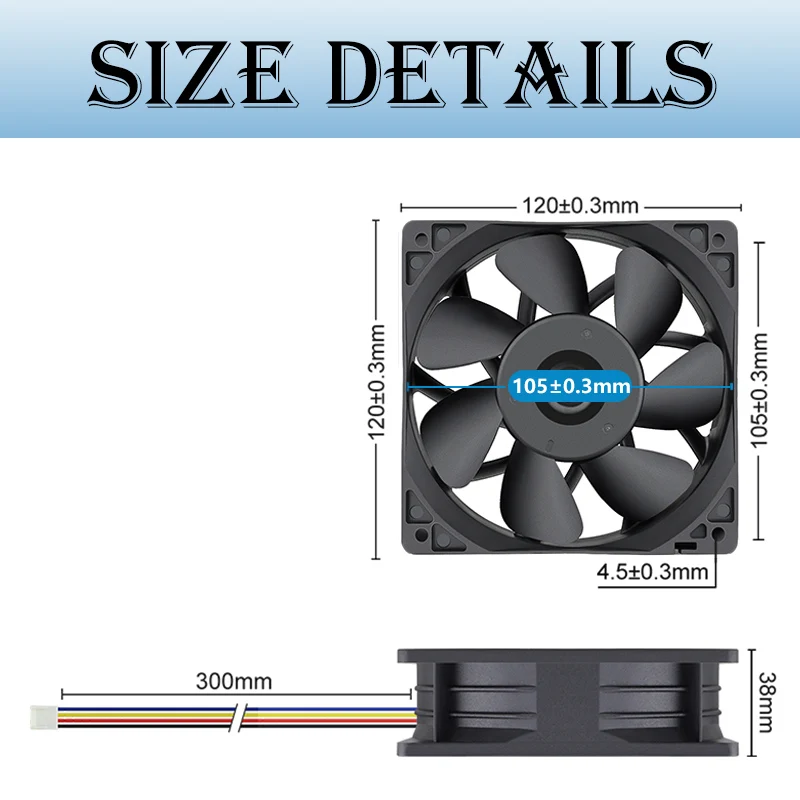 El ventilador DC 12V 120MM6000 RPMAlta Velocidad y227 CFMGran flujo de aire.