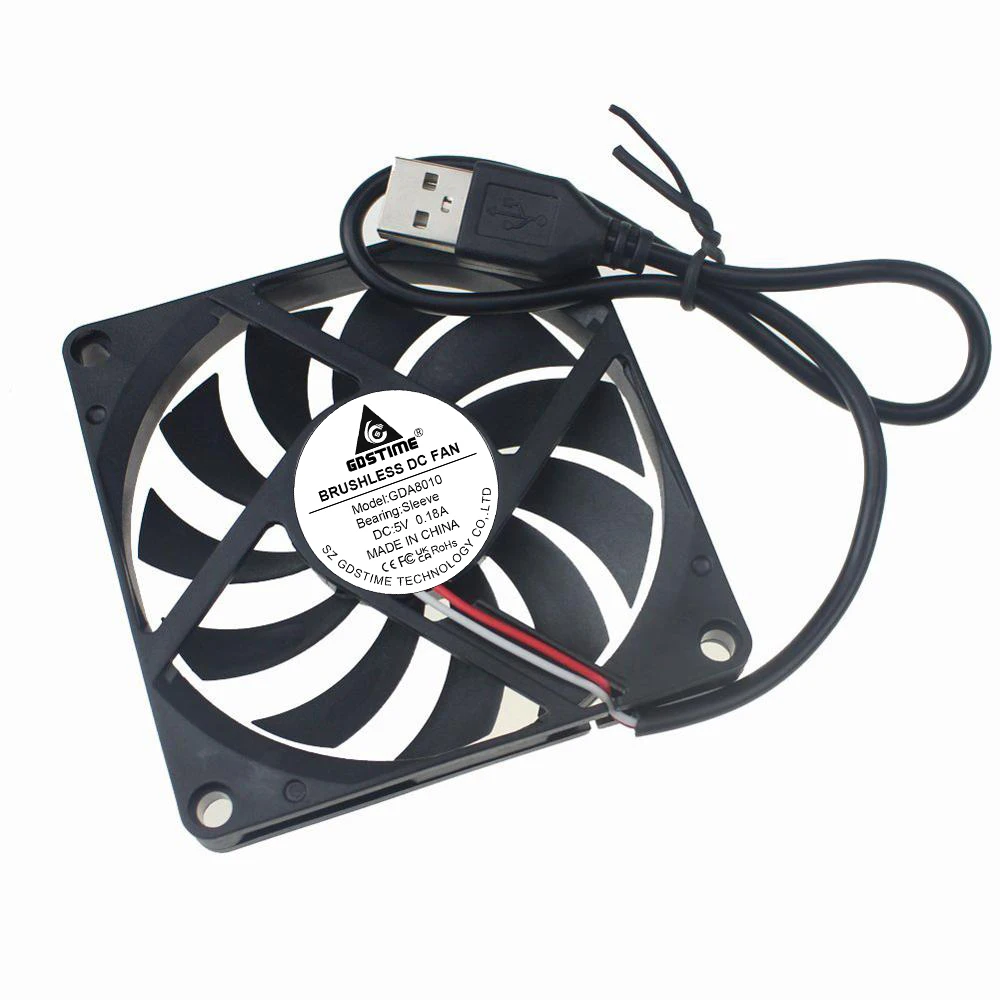 Comprar Gdstime-ventilador de refrigeración de CC Axial sin escobillas, dispositivo de refrigeración de 80mm, 5V, 80mm x 80mm x 10mm, 8cm, 8010 PC, 10 unids/lote