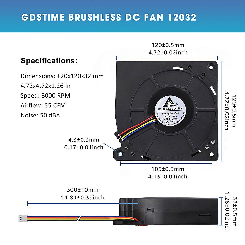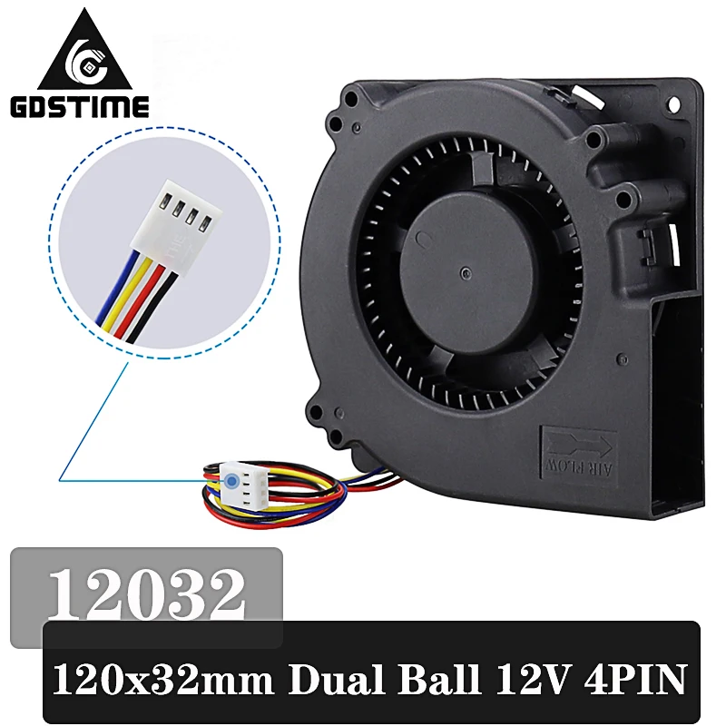 Comprar Gdstime-ventilador de refrigeración de turbina centrífuga, 12032, 12cm, CC, 12V, 4 pines, función FG PWM, rodamiento de bolas Dual, 120mm, 120x120x32mm