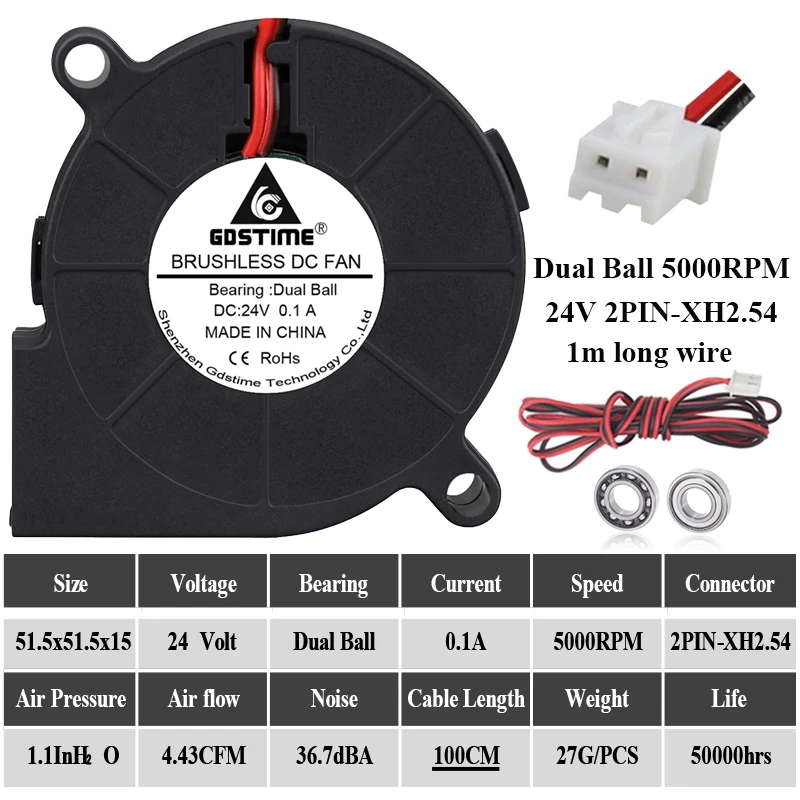 Comprar Gdstime-ventilador de refrigeración Turbo pequeño para impresora 3D, 5 piezas, 24V, 50 × 50 × 15mm, 50mm, Cable de 5015 cm