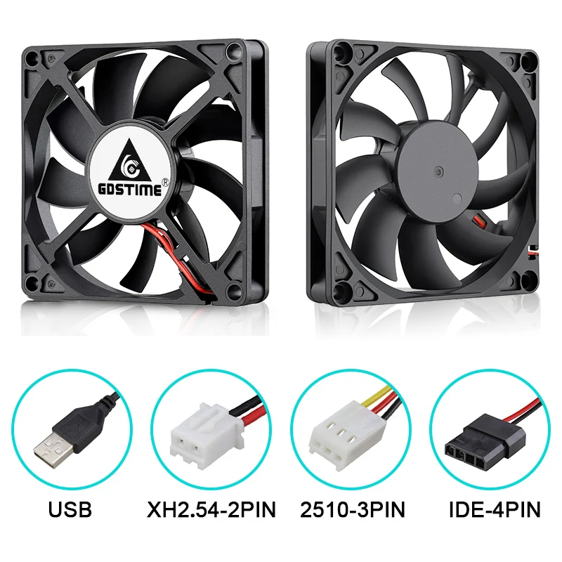 Comprar Gdstime-ventilador silencioso para PC, enfriador de 5V, 12V, 24V, 2 pines, 3 pines, USB IDE, 4 pines, 80mm x 80mm x 15mm, 8015, lote de 2 unidades