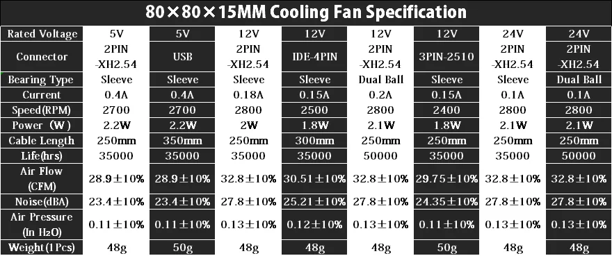 Tamaño del ventilador: 80 x 80 x 15 mm / 3,14" x 3,14" x 0,59" (largo x ancho x alto)
