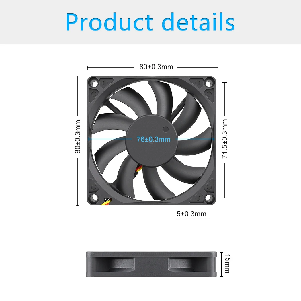 Tamaño del ventilador: 80 x 80 x 15 mm / 3,14" x 3,14" x 0,59" (largo x ancho x alto)