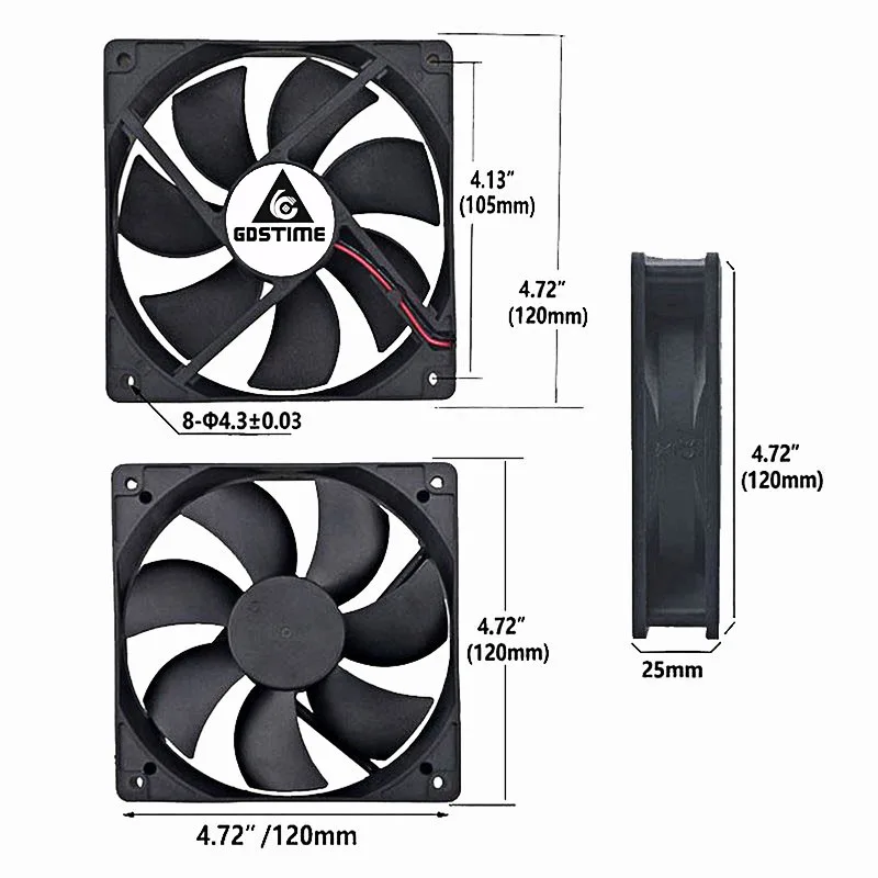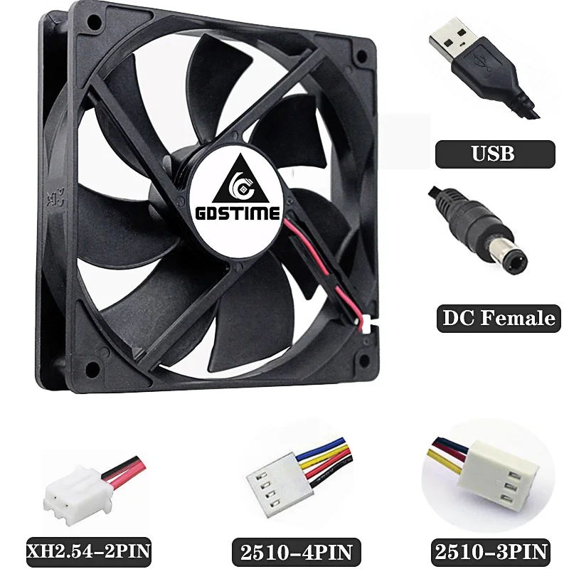 Comprar Gdstime-ventilador sin escobillas para ordenador, dispositivo de refrigeración de 12cm, 120mm, 12025mm, 5V, 12V, 24V, 48V, 120mm x 120mm x 25mm, 2 pines, FG, PWM, USB, DC