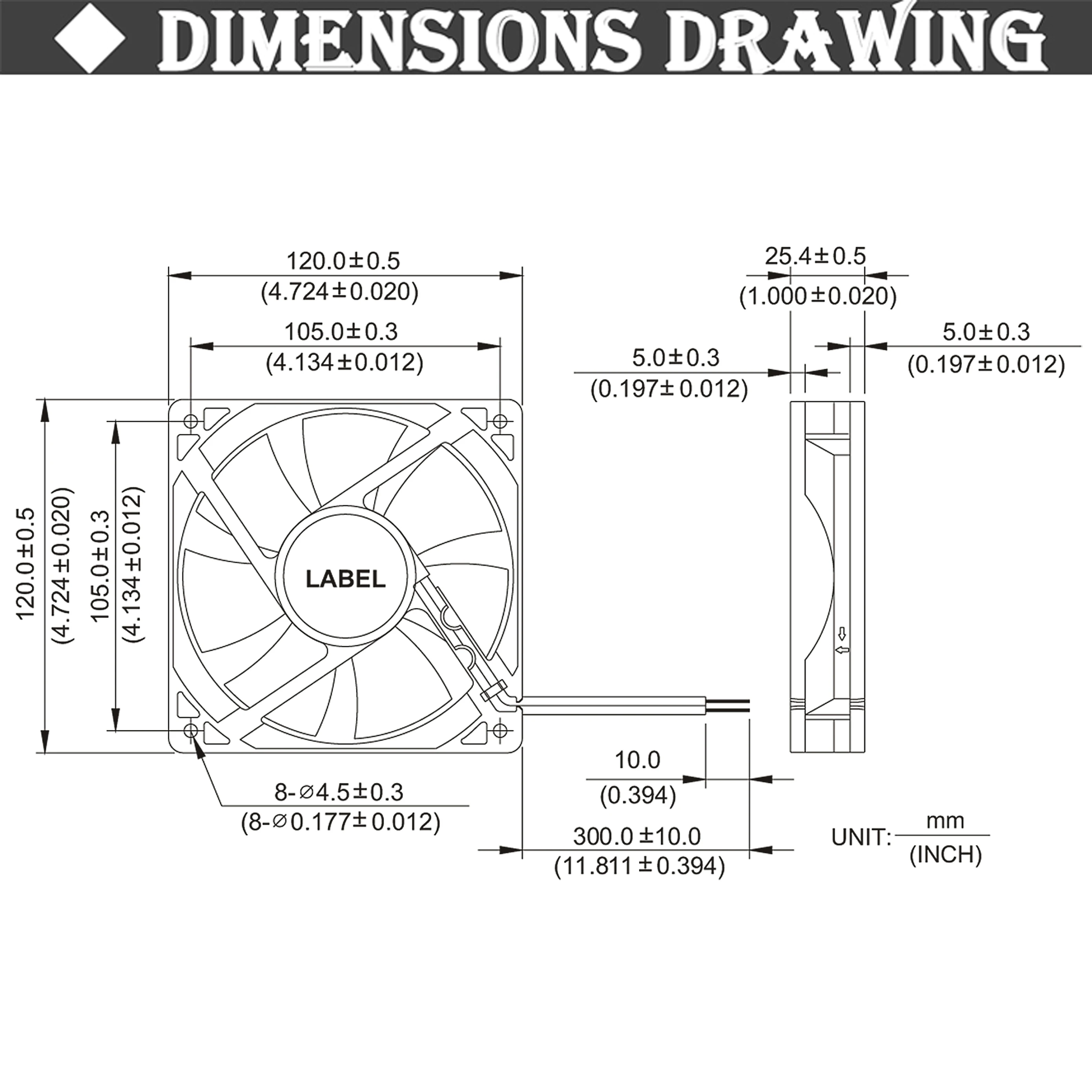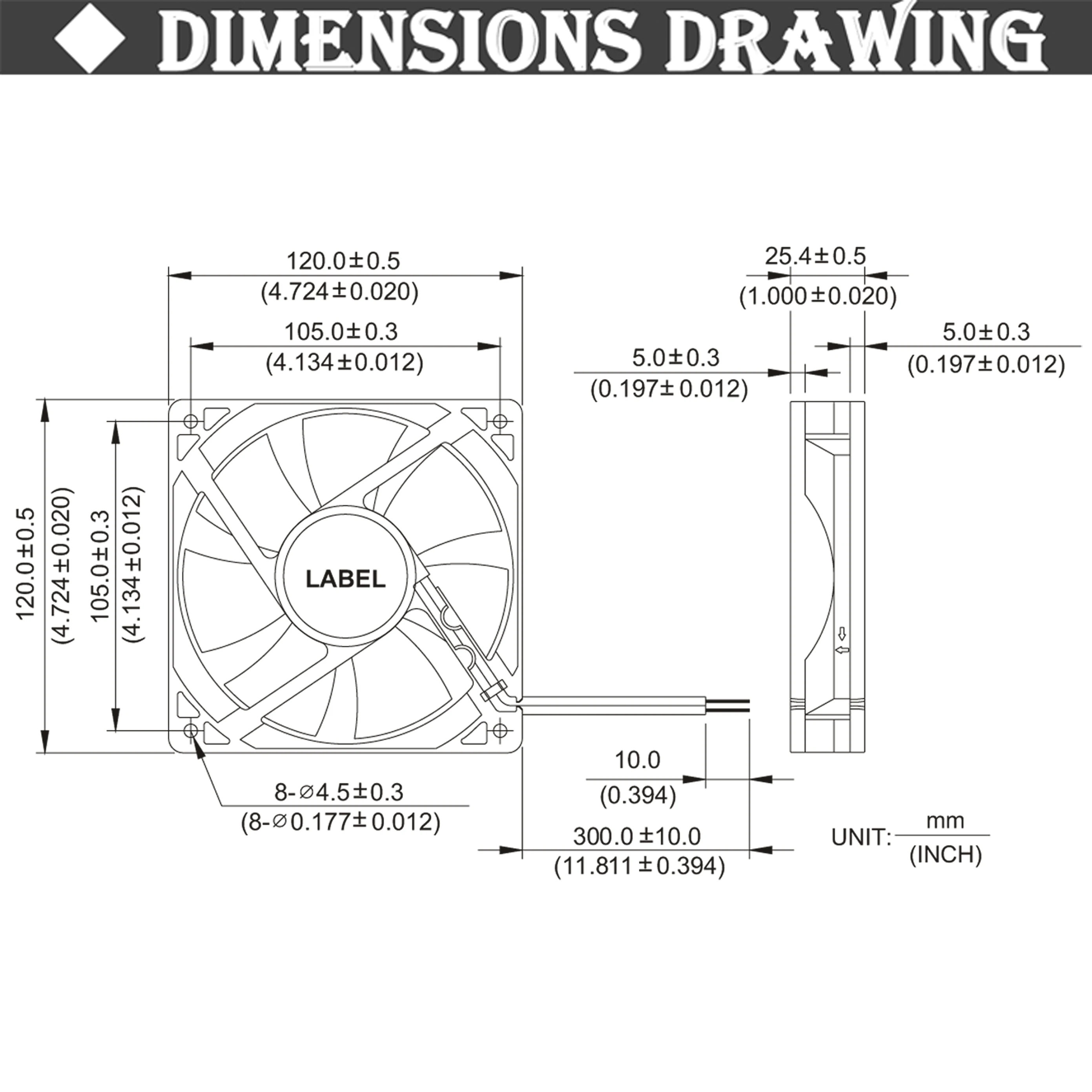 Ventilador de 5V 12V 24V 48V 120mm x 120mm x 25mm